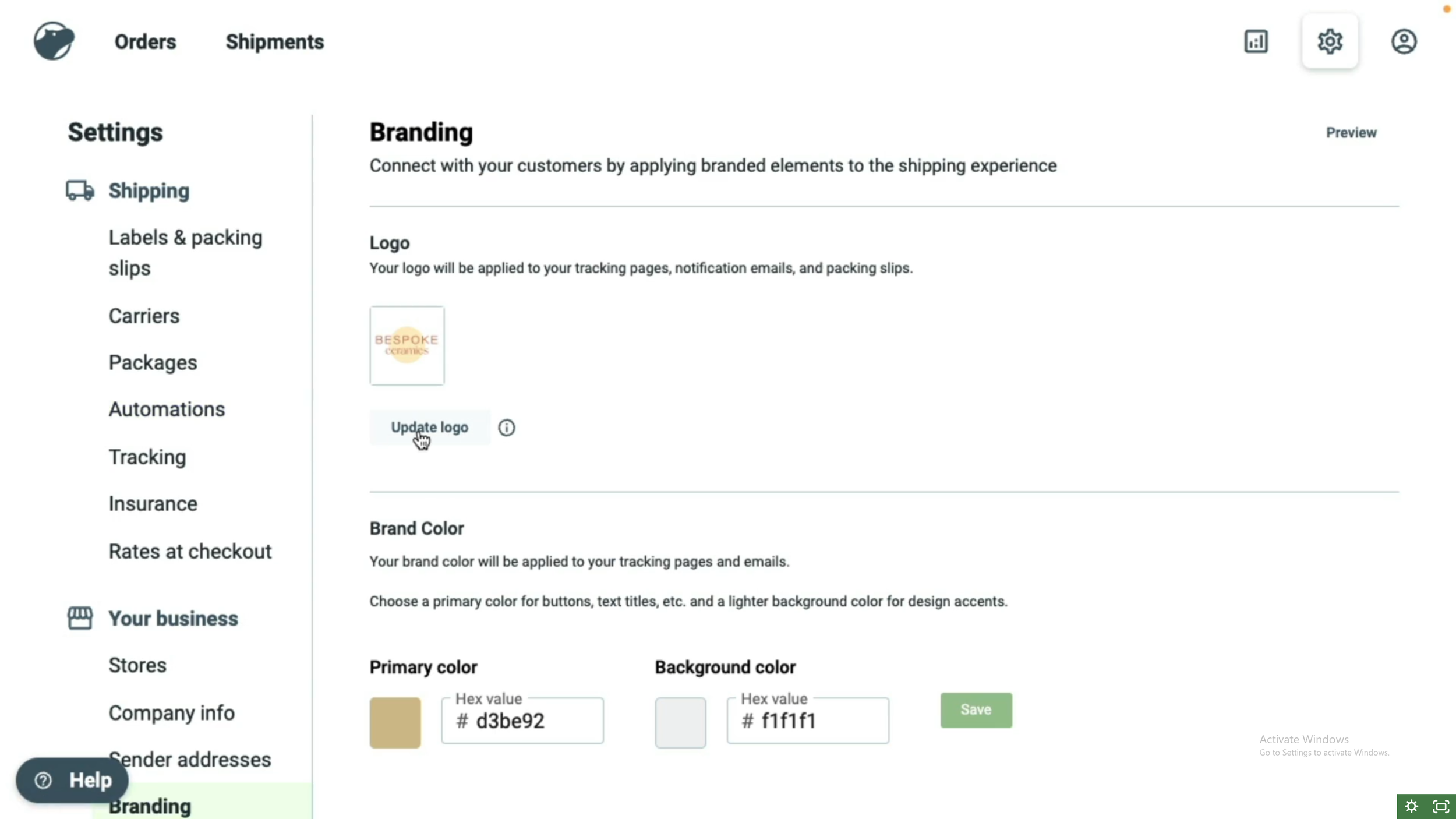GoShippo’s flow for their branding. Notable feature was they allowed colour picker to be applied on their email